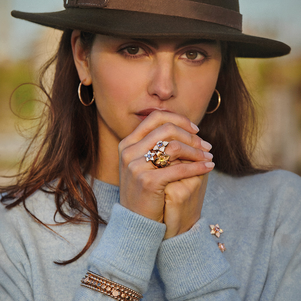 Poppies are our favorite wildflower. Strong yet fragile, they are a radiant symbol of freedom and peace. Brooch, ring, pendant, and earring designs, elegant with or without diamonds for a perfect mix and match.