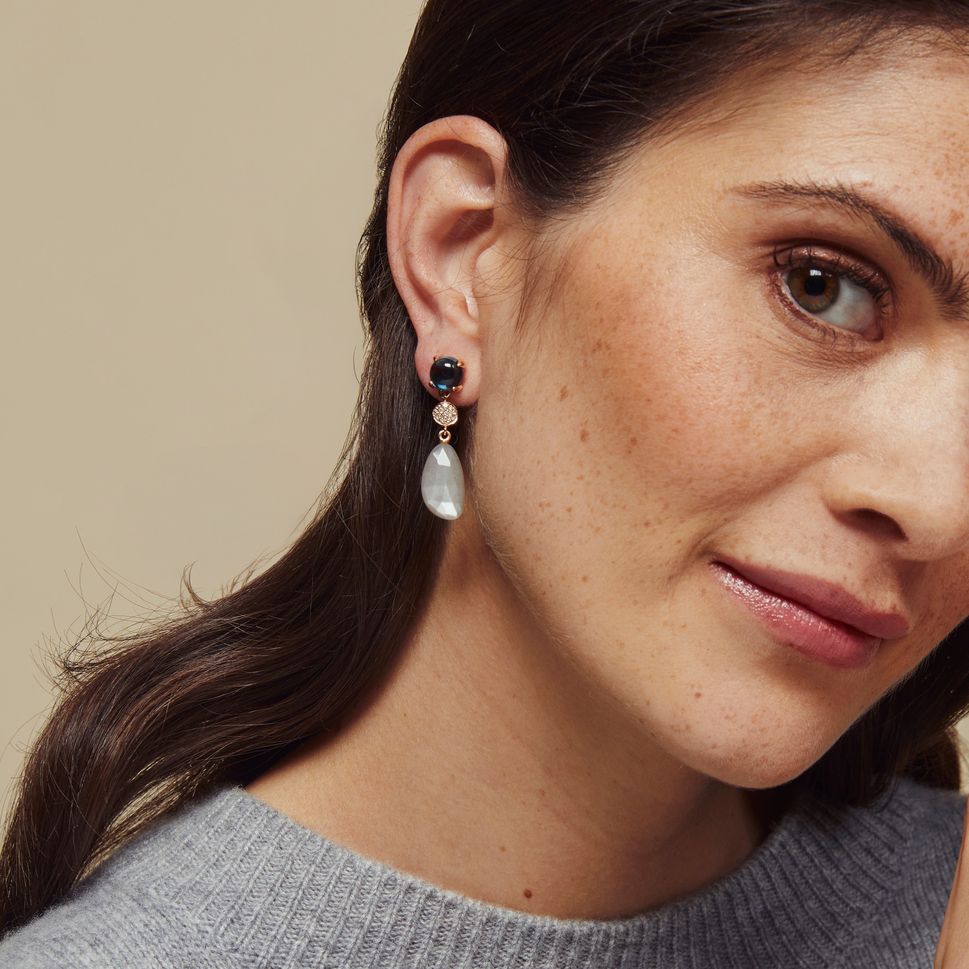 - London Blue topaz, grey moonstone