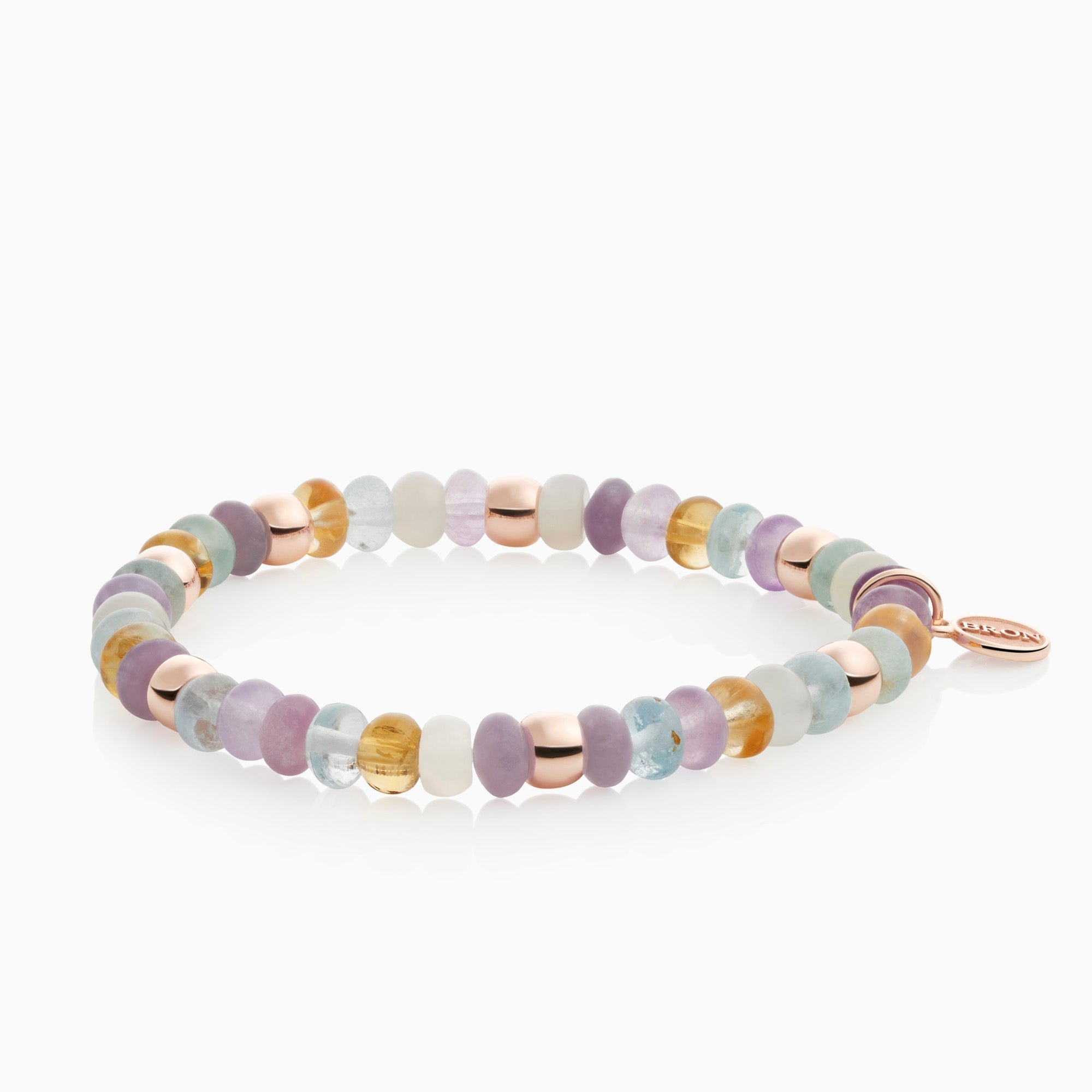 Our bead bracelet with seven golden ornaments and a golden Bron tag. Here in our ice-pastel color theme. Limited edition.