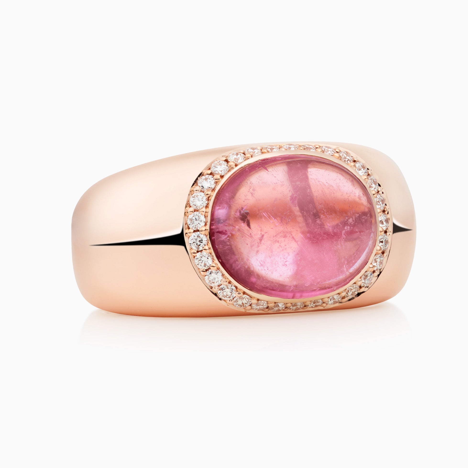 with cabochon-cut pink tourmaline