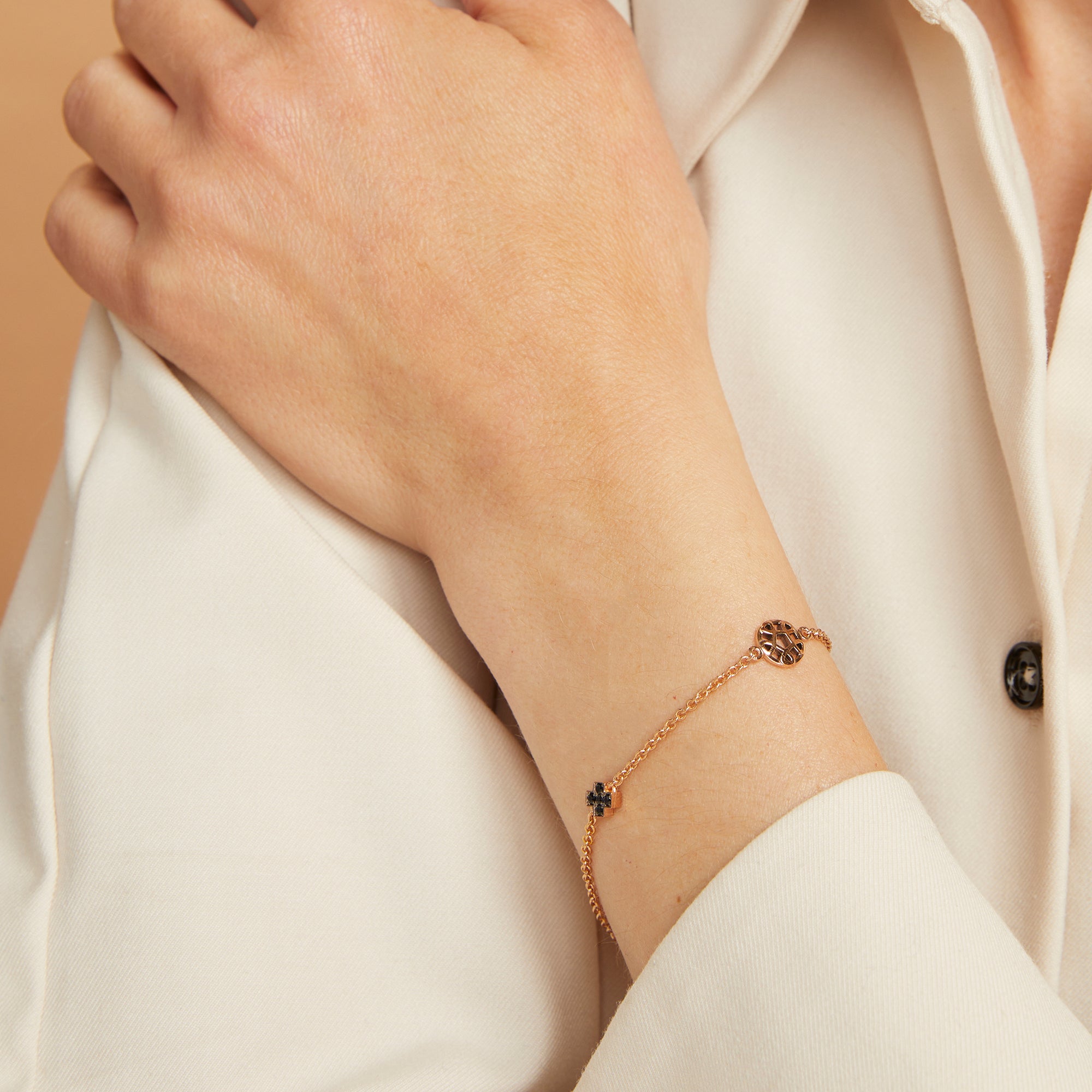 Bracelet with three iconic design elements: the kiss, the Toujours Ajour motif and a mini champagne Stardust piece. There's always something to look at!