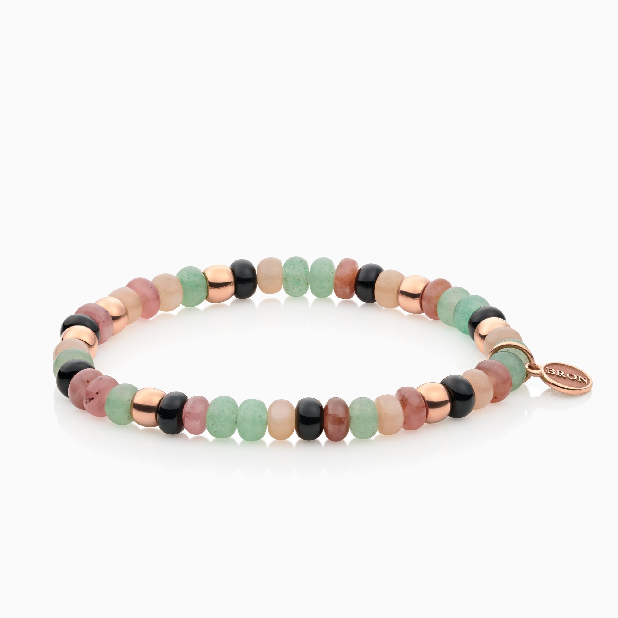 Our bead bracelets with seven golden ornaments and a golden Bron tag. Made in various color themes. Note: availability is limited.