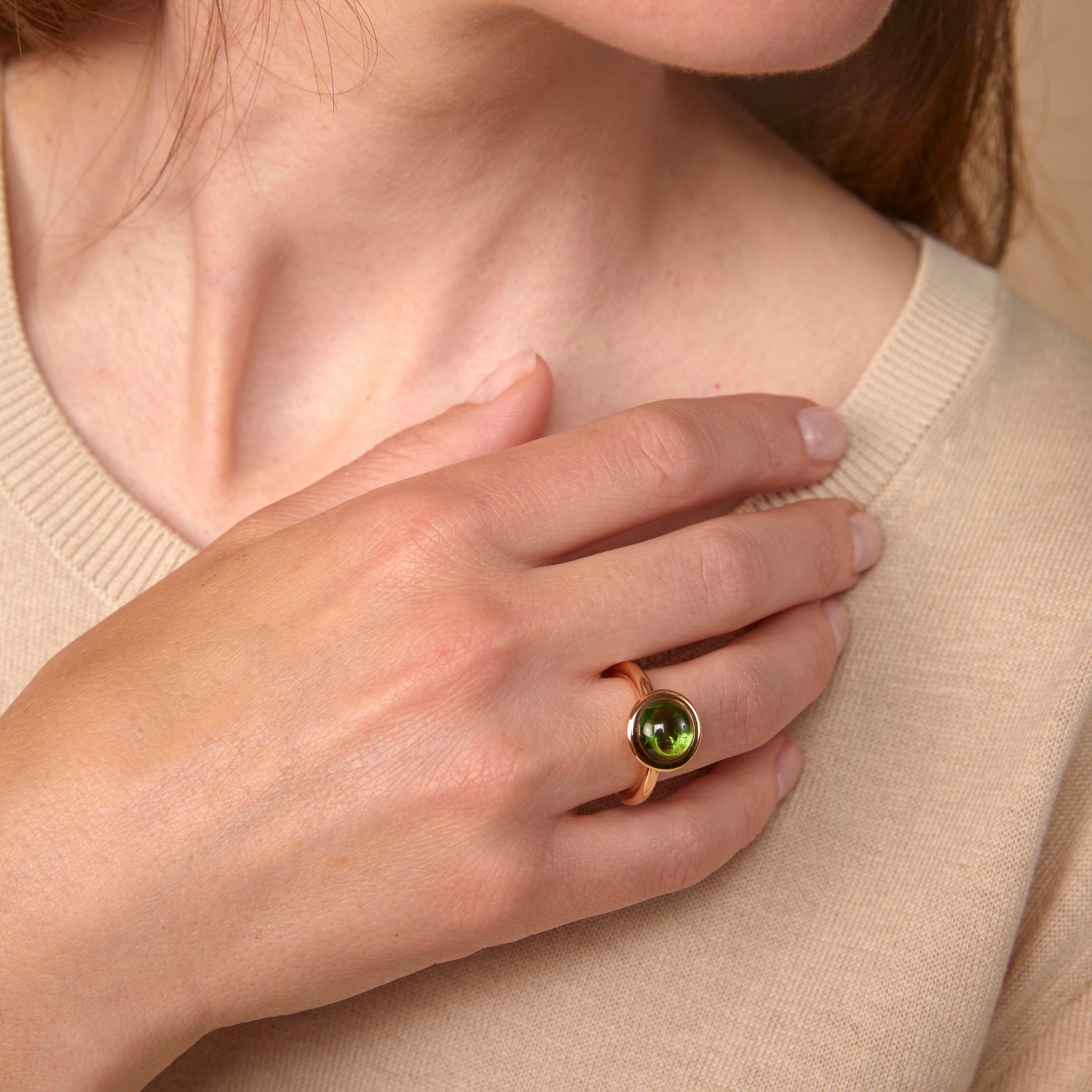 A bright green cabochon tourmaline wrapped in rose gold. We simply love Sushi rings!